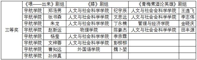 5月10日晚,人文短剧比赛决赛在良乡校区演艺厅正式进行。进入决赛的六支队伍分别带来了《新舌战群儒》、《与子共饮、与我同流》、《青梅煮酒论英雄》、《喂——出来》、《膝》和《彷徨》六部精彩的作品。每支队伍都用他们独特的方式呈现了对作品的深刻理解,他们大笑,他们沉吟,历史的人物在他们的演绎下变得鲜活,曾经的史实也被他们赋予了新的意义。经过激烈的比拼,最终《彷徨》剧组获得一等奖;《新舌战群儒》、《与子共饮、与我同游》剧组获得二等奖;《膝》、《喂——出来》和《青梅煮酒论英雄》获得三等奖。在人文短剧比赛中,六组演员用波澜壮阔的历史演绎古典的美,凭优雅抒情的文字书写缠绵的诗,在同学们心中播下人文情怀的种子。