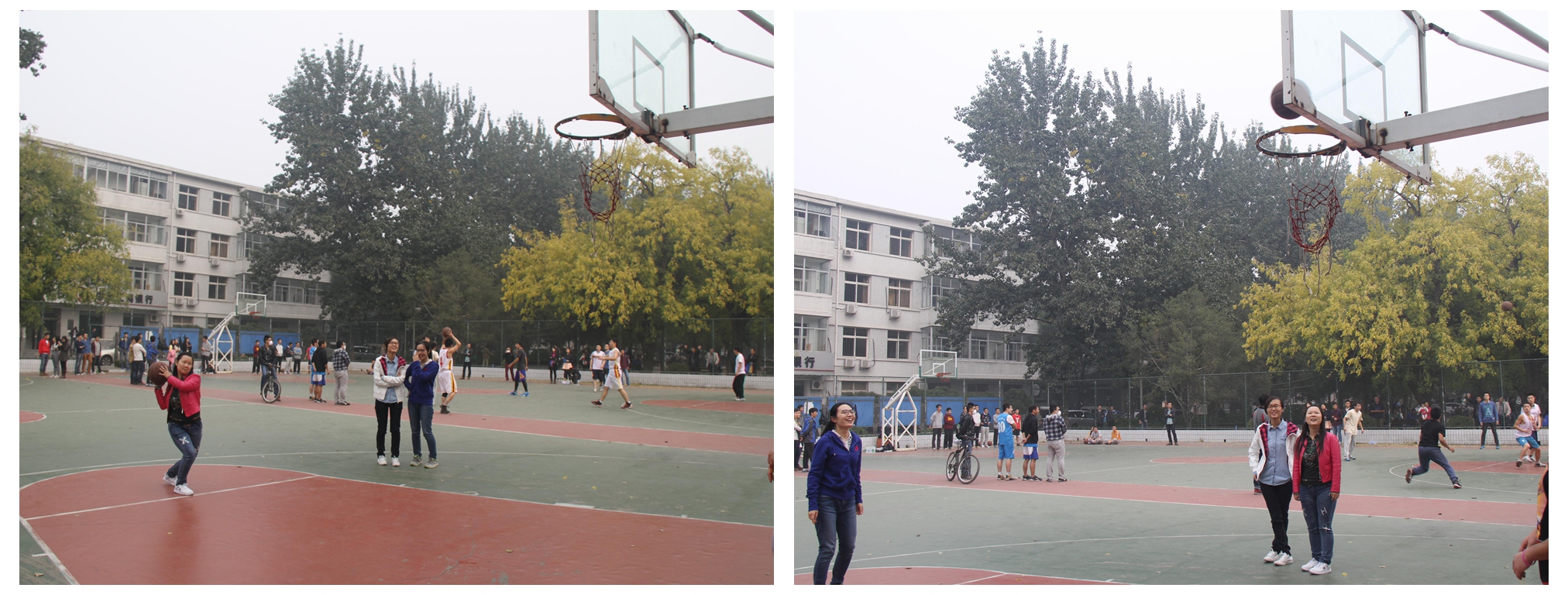 在比赛期间,赵丽、刘懿晓、邝岩进行了精彩的罚球区投篮,而人文学院的其他同学纷纷为大家拍摄、送水和加油喝彩,为球员们鼓舞士气。