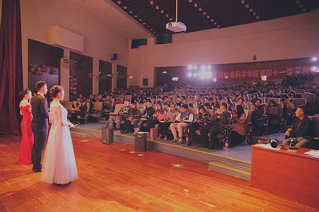 经过前期的精心筹备,晚七点,在绚烂的灯光中,决赛正式开始。出席此次决赛的嘉宾有:员工工作处党莹老师、徐磊老师、耿庆磊老师,人文公司党委副书记、副经理李冰,人文学院团委书记孙硕,人文学院辅导员于满、潘京润,以及来自各个学院的多位辅导员老师。此次深秋歌会也吸引了人文学院及其他学院的众多同学前来观看,并为自己喜爱的选手加油助威。