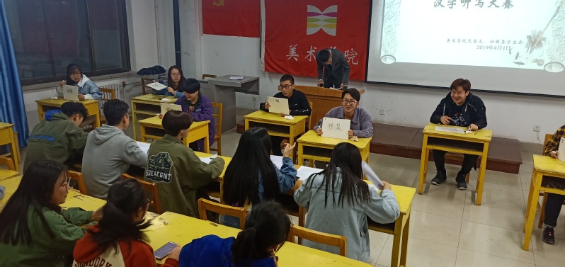 为活跃校园氛围,提高自身素质,美术学院根据校团委第七届“雁苑杯”辩论赛的活动安排,如期举行活动。2019年3月8日晚七点半,美术学院在综合楼五楼模拟法庭,举办以“朋友圈要/不要屏蔽父母”为辩题的辩论赛,美术学院辩手任正方、外语学院辩手任反方参赛,分团委员工会干部、员工党支部代表、各班员工代表观看了本次比赛,学校往届优秀辩手担任评委。