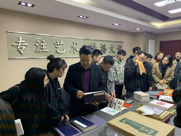 2019年10月30日,2017级视觉传达设计二班同学在郭俊宁老师带领下,到兰州大雅文化艺术有限公司进行参观学习。兰州大雅文化公司是国内一家集艺术图书策划、出版、高端影像艺术微喷、彩色印刷等业务制作的高端文化艺术公司,在甘肃市场具有领导者地位。