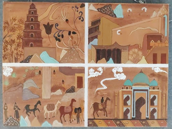 壁画被广泛地应用于现代生活的建筑物之上,展现着自身独特的审美情趣和艺术展现方式,装饰着人们的生活。而综合材料是提高现代壁画装饰品质的有效途径,通过不同材料的应用使得现代装饰壁画更加具有美感,随着现代化学化工技术的发展,增加了不同的现代的材料,丰富了装饰原料,达到了与传统壁画不同的效果。在此门课程的教学过程中,师生从古老的敦煌壁画入手认真研习,在研习基础上进一步进行敦煌壁画元素结合综合材料的二次创作,进而将研习收获运用于新的装饰壁画创作中。师生积极、富有激情的完成了教学任务,并完成了一大批优秀的作品。