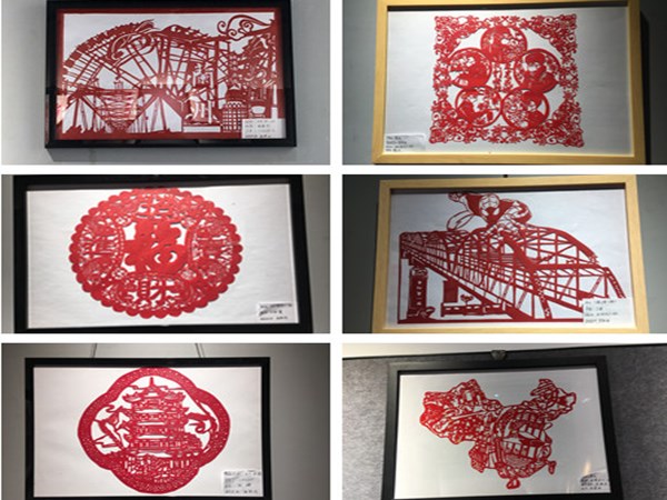 此次展览共展出剪纸作品50余幅,一部分作品以甘肃标志性城市建筑中山桥、白塔山等为主题,适当加入有代表性的文化元素莫高窟、飞天、牛肉面等元素,通过PS对以上图案进行设计加工,形成较有特色的剪纸作品。另外一部分作品以民间吉祥团花或对称图案为主要题材,通过剪纸的形式把皮影、戏曲人物、经典工笔画局部元素作为创作素材,丰富了剪纸艺术的表现形式。