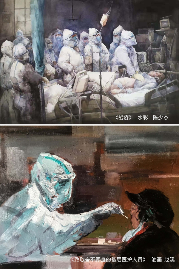 面对这场疫情,为鼓舞全校师生坚定抗疫信心、增强抗疫斗志,建立防疫意识,营造战“疫”氛围,公司党总支号召全体党员、师生纷纷投入到这场疫情阻击战中,发挥自身专业优势,立足专业特点,开展起“以艺战疫”系列活动。他们以独特的视角和敏锐的观察力,拿起画笔,用双眼透过危机感知生命,用双手穿越时空描绘当下,记录和讴歌奋战在一线的防疫、抗疫英雄,向危难时刻挺身而出的最美逆行者致敬。