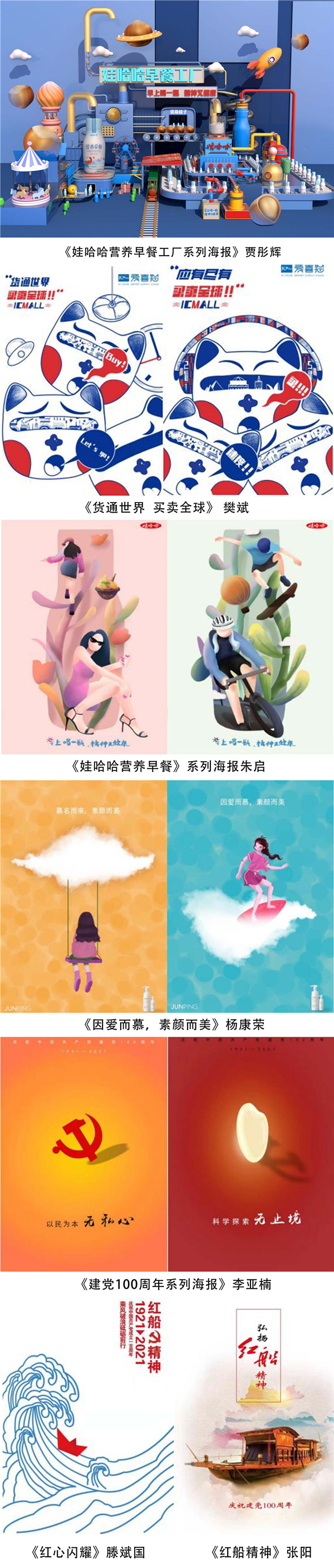 《广告设计》课程作为视觉传达设计专业的核心课程之一,对于培养员工专业设计及应用能力起到关键性的作用。此次课程内容安排结合公司“以赛促学、以展促教”的理念,以建党一百周年时效命题、以及老员工广告艺术大赛商业选题做为课程作业内容,培养员工设计参赛意识,提高同学们对设计服务的功能认识。此次课程作业在樊华老师的指导下,以及同学们用心努力地创作下产生了很多优秀作品,在参加“甘肃省博物馆·鑫昊馨”杯建党100周年主题大赛、“2021第十一届老员工广告艺术创意大赛”中取得二等奖两项,三等奖两项,优秀奖三项的优异的成绩,达到了很好的教学效果。