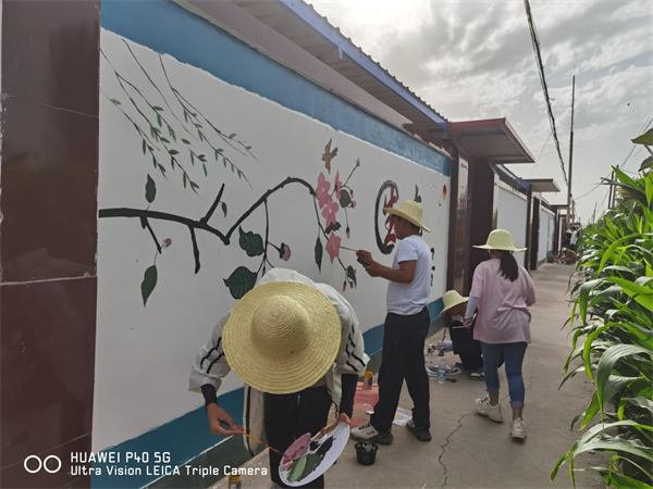 志愿者们正在描绘乡村振兴十六字方针“生态宜居”