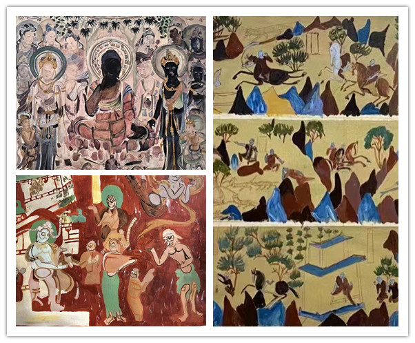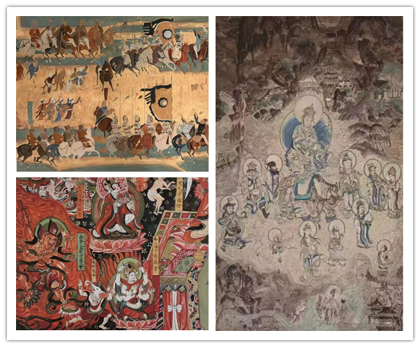 壁画被广泛地应用于现代生活的建筑物之上,展现着自身独特的审美情趣和艺术展现方式,装饰着人们的生活,而综合材料是提高现代壁画装饰品质的有效途径,通过不同材料的应用使得现代装饰壁画更加具有美感。在此门课程的教学过程中,师生以敦煌壁画元素结合综合材料的方法运用于新的装饰壁画创作中。