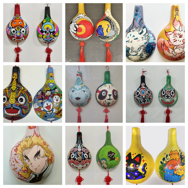 本次课程采用智慧树慕课平台,以线上视频讲授理论,线下项目化实践主题教学为主。此次展览共展出剪纸作品150余幅,作品以甘肃的民间吉祥图案、龙凤图腾为主要题材,通过剪纸的形式把皮影、戏曲脸谱、经典工笔画局部元素作为创作素材,丰富了剪纸艺术的表现形式。木制马勺脸谱150个,民间社火马勺脸谱古朴端庄,现代动漫人物、花卉、风景马勺清新可人,同学们在一方马勺上实践了传统与创新的结合。