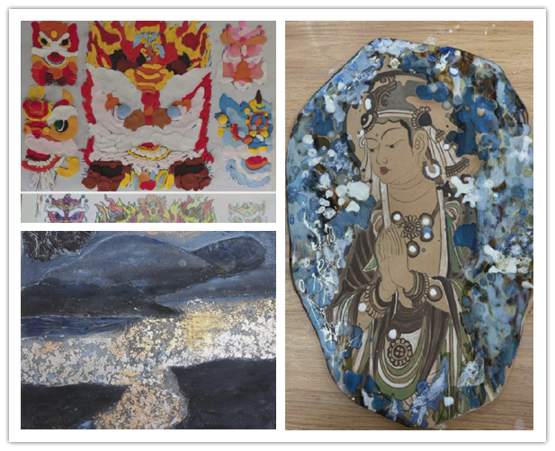 综合材料绘画,总体上可分为平面类和立体类,平面类大致可分为:废旧利用类、刻纸剪贴类、综合造纸术、版画结合、水拓画等;立体类分为:浮雕类、泥塑类、纸塑类、废物拼装、立体布艺等。在审美日趋多元的当下,材料实验已经成为艺术家不可或缺的基本素养,此次综合材料绘画课程开课以来同学们热情投入到材料的寻找与实验之中,尝试各种可能,在材料组合与制作中不断有新发现,有新的创作灵感产生。材料具有当下性,唯一性,材料的介入同时也会打破我们观念中的确定性,迫使我们面对当下进行新的思考与尝试。材料引入增加了同学们艺术学习新的可能性,是一次心灵的激荡与冲击。该课程的学习能够培养员工的创造性思维能力,通过动手制作掌握材料的基本属性、造型原理和艺术技巧。