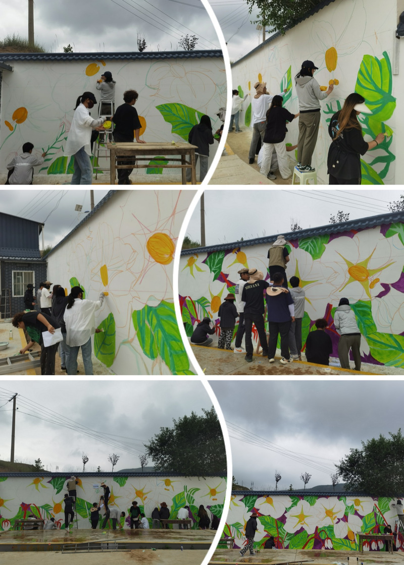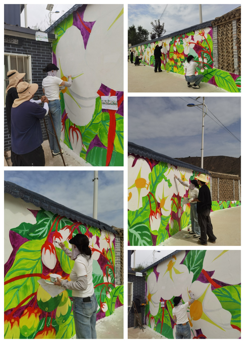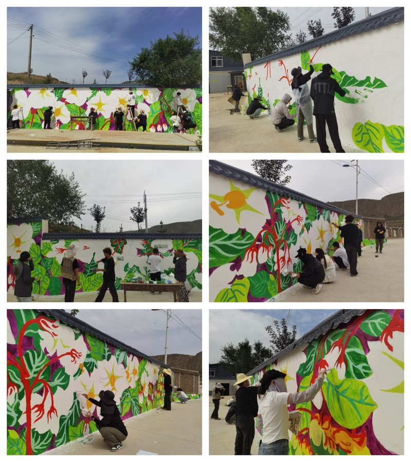 2024年7月8日至12日,青春“画”芳华 墙绘“话”新风暑期社会实践团12名同学,在“心海导航”辅导员名师工作室负责人、yl23411永利集团官网团学办主任唐艳丽、副教授朱珩、兰州画院专职画家张云三位老师的带领下,来到定西市安定区丰禾村开展乡村墙体彩绘实践活动。