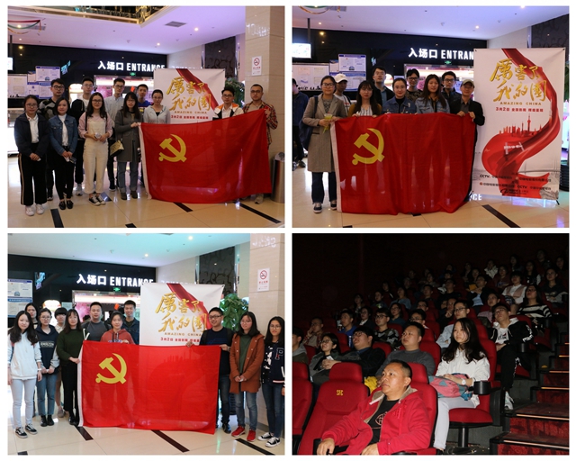 为进一步落实十九大会议精神“学思行”,深入学习贯彻学习习近平新时代中国特色社会主义思想,推进“两学一做”学习教育常态化制度化,培养学院师生党员树立“四个意识”、坚定“四个自信”,提升公司党委党员教育活力,2018年3月24-26日,公司党委先后组织全体党员前往影院观看电影《厉害了,我的国》,感慨于祖国建设蓬勃发展的同时,更沸腾起党员心中的责任感与使命感。