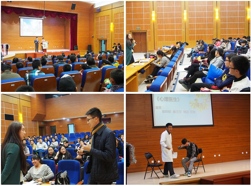 2014年11月27日,3044AM永利集团官网14级新生心理健康节于图书馆音乐厅正式开幕。人文学院讲师、中国科学院心理研究所博士、中国心理学会会员王丹老师、人文学院辅导员李志鹏老师参与了此次开幕式。