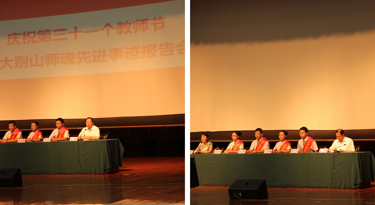 在四位报告人依次作出报告后,黄冈市市委书记刘雪荣发表了重要讲话。他指出“百年大计,教育为本”,实现大别山革命老区振兴发展目标根本在人才、关键在教育。刘雪荣书记希望广大教师和教育工作者牢记使命、勇于担当,要求全市始终把教育放在优先发展的地位,始终践行“办人民满意教育”的宗旨。此后,市长陈安丽对奋战在教育第一线的广大教师寄予祝福与希望,并号召全市广大教师和教育工作者立足岗位,学习先进,发扬成绩,更好地践行大别山师魂精神。