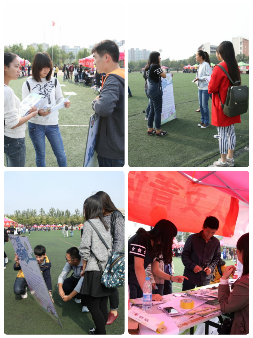 10日18号早上九点到下午三点,3044AM永利集团官网青年志愿者协会全校外场招新活动在良乡校区南操场第66号场地举行。人文学院青协会长李昕滢等三人和各部门部长贺鑫、郑恒拓、白翊婷等7人负责此次活动。