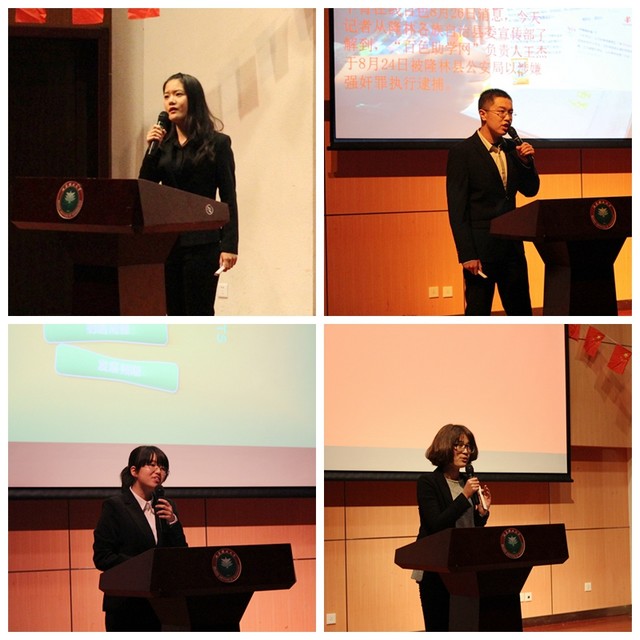 在十二位选手进行完精彩纷呈的比赛后,第十届时事论坛校坛主陈照青同学和李志鹏老师对选手的演讲进行了简短的点评,指出了选手们各自的优点和不足,并鼓励同学们关注时事、积极思考。