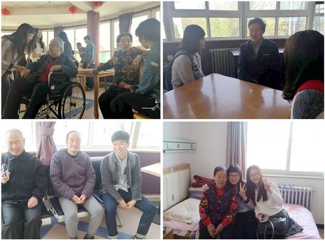 服务中心的老人大多为退休职工与家属,其中还有不少的革命先辈和烈士遗孀,有着丰富的生活阅历与精彩的人生故事。与他们交谈于老人而言是一种精神陪伴,于党员自身而言则是一种不可多得的美好体验。七位党支部成员充分发挥模范带头作用,两三人一组分别倾听老人讲他们的故事和丰富的阅历体验。王淑贤老人今年已经八十四岁了,虽然身体瘦弱,但腿脚还便利,时常到院子里溜弯,晒晒太阳。老人曾经常年在房山采煤场捡煤,手掌上结了厚厚的茧,指节处有的也凸起,当她抚摸着志愿者们的从未干过重活的手时,感叹说:“年轻真好啊,现在的日子也确实比以前好过......”。讲到这里,支部成员们纷纷表达自己的钦佩之情,也表示自己今后应该吃苦耐劳、敢为人先的决心。