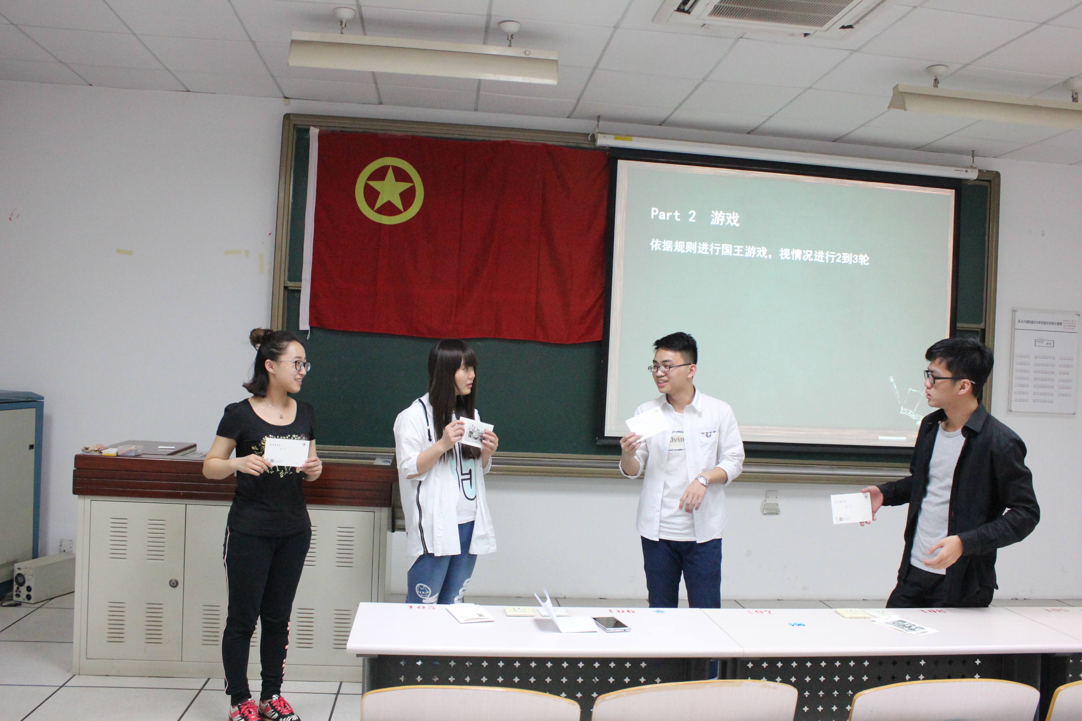 观影结束后,大家展开了有趣的国王游戏。刘天然同学现场演唱了《我们是共产主义接班人》这一红歌,迎来了大家热烈的互动,积极响应了八字真经的“修德”“笃实”意义。