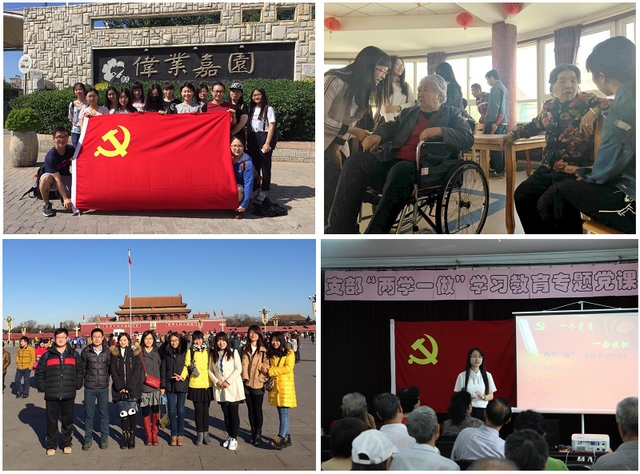 人文学院2014级本科党支部于今年4月在北京国爱老年人服务中心顺利开展关爱老年人志愿服务活动,支部7名成员与青年志愿者们一起携手并肩积极参与,关爱老人热心服务,全体支部成员将“两学一做”落实到行动上,体现了青年党员团结友爱、甘于奉献的精神风貌;马克思主义理论专业研究生党支部同天桥社区党委进行对接,先后开展两次党日活动,30位社区老党员同志参与到活动中来,党支部成员表示从老党员的思想中提升了自己的党性认识;2015级研究生第一党支部的全体成员则在天安门广场前回顾历史缅怀先烈,展现出了新一代党员先锋心系祖国、积极进取的精神风貌;2013级全体党员前往长阳体育公园开展了一次体育活动,支部成员们利用公园里的体育设施开展了健走等健身运动,让支部成员内部有了进一步的交流,增进了情谊,提高党支部凝聚力; 2013级本科全体党支部成员协同伟业嘉园社区工作人员开展了社区趣味运动会,为当地社区居民带来了热情而贴心的志愿服务,支部成员表示通过实践活动体会到了志愿服务的快乐,体现了自身党员的先进性所在。