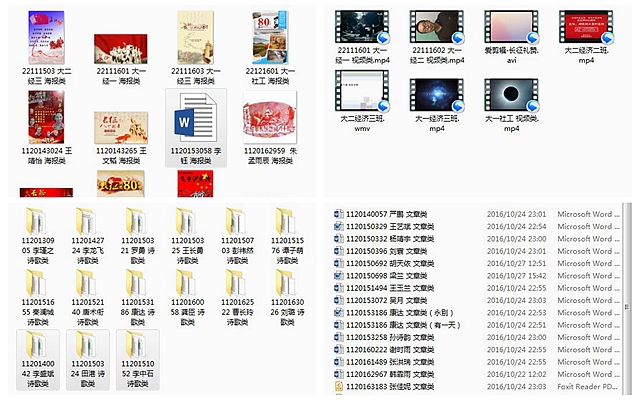 经过线上、线下多渠道宣传和同学们的广泛参与,最终征集作品56份,其中包括19篇文章、13张海报、15首诗歌、8个视频,1张摄影作品。
